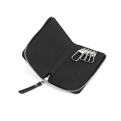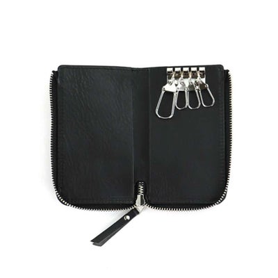 "薄い" L 字ファスナーキーケースで内装に4連キーリング+サイドにカードポケット2か所を搭載