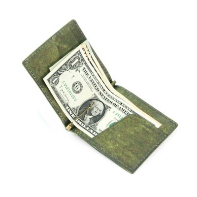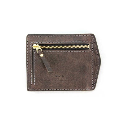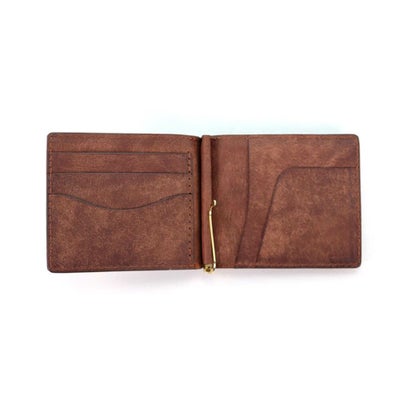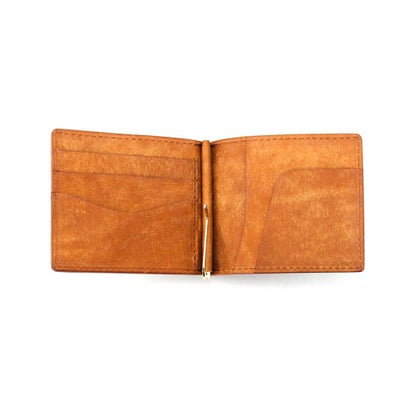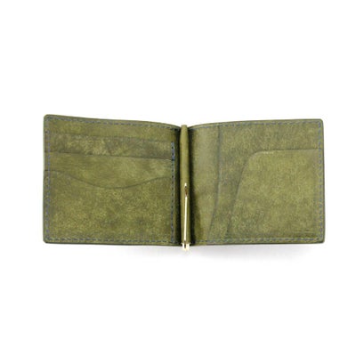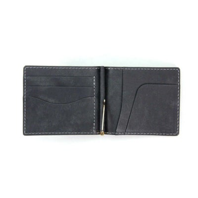 カードポケット3枚分+サブポケット1ヵ所、札をクリップで挟んで持つスタイル、マネークリップでは比較的珍しい小銭入れを表面に搭載。