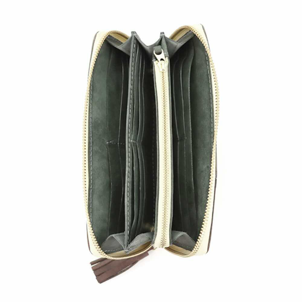 十字配色が特徴のラウンドファスナー長財布