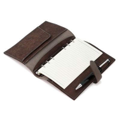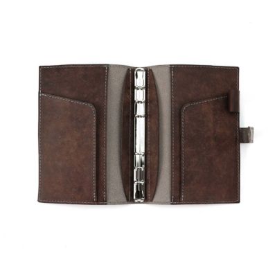 仕事のタスクノートや旅行先での地図やメモ、領収書を挟み込めるレザーシステム手帳です(※写真のリフィルは95mm×170mmの6リング用紙)