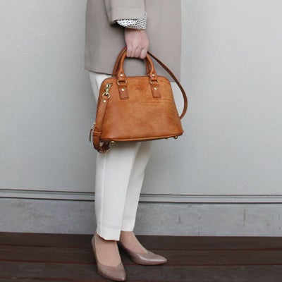 小さめのレディースバッグ。ストラップでショルダーバッグとしてもお使いいただけます。