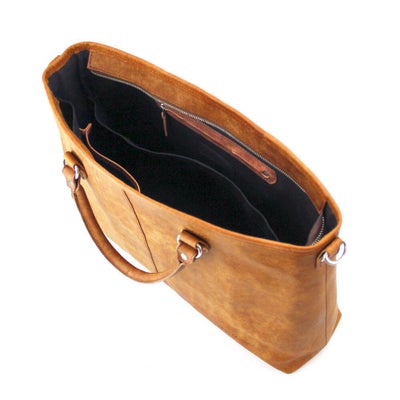 内装はA4ファイルやタブレット端末は勿論、ノートPCも収納可能なシンプルな内装設計。小物ポケット2か所とその後ろに仕切りスペース、逆側にも同仕切りスペースを搭載し書類の仕分けなどにも有効