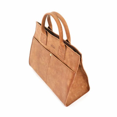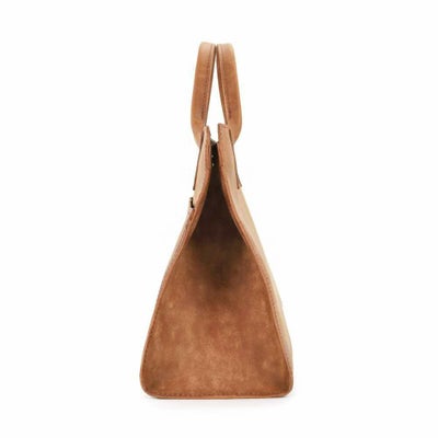 四角掛かった綺麗な印象でカジュアルにも綺麗な装いにも合わせられるデザインのミニトート