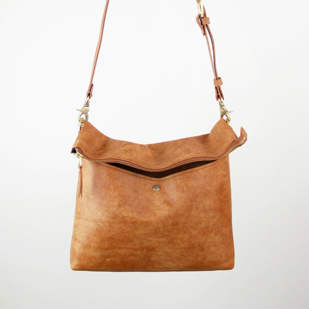 口折れタイプのショルダーバッグ。ショートハンドル付の為短く肩に背負う様にも扱えます。