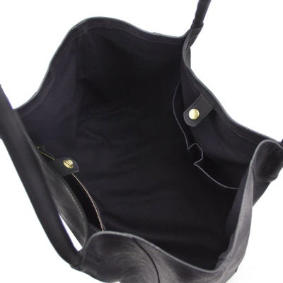 柔らかな流線形を目指した大きめの袋トート。B4用紙や大型のファイルの他、ノートパソコンは勿論のこと、着替えやタオルなどもざっくり広く収納が可能な大型袋トート