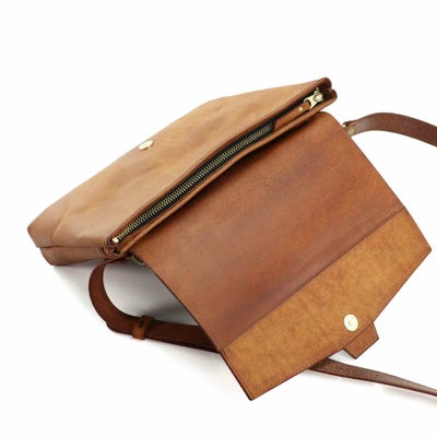 スマートなサイズに関わらず長財布も収められる幅と底マチを設けた事での収納量の確保が叶い小物などの日常で必要なアイテムを本体にはスマートに携帯できます