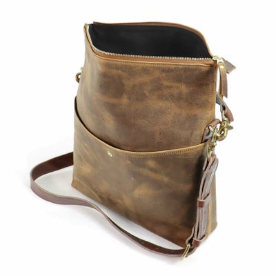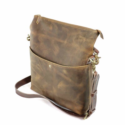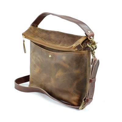 クーズーの表面感を活かした口折れタイプのショルダーバッグでショートハンドル付の為短く肩に背負う様にも扱えます