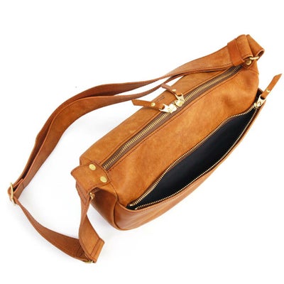 より普段使いの利便性と持ちやすいサイズ感の両立を求めたシンプルなショルダーバッグとして製作。財布やスマホ、カギ以外にも小物ポーチやタオルなどざっくりと入る袋状のBAG。