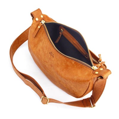 イタリア伝統製法「バケッタ」により鞣された植物性タンニン鞣し+染料仕上げの牛ショルダー革仕様