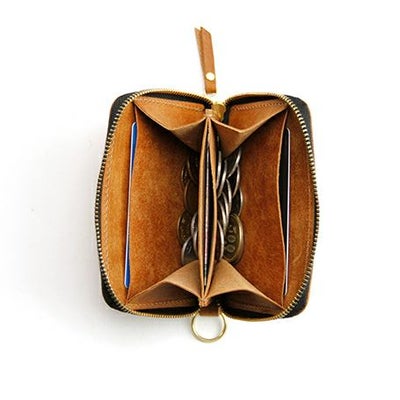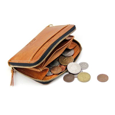 外側両面にポケット。内装に仕分けのある小銭スペースとカードポケット2箇所に加え札やカードも挟める袋状ポケットを搭載。ファスナー式でまとめて持てるので仕事の時やちょっとしたお出かけにも持ちやすい小銭入れです。