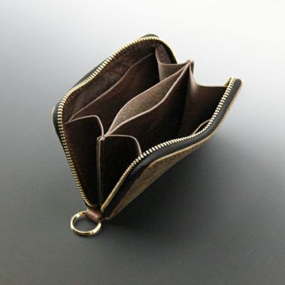 内装に仕分けのある小銭スペースとカードポケット2箇所に加え札やカードも挟める袋状ポケットを搭載。ファスナー式でまとめて持てるので仕事の時やちょっとしたお出かけにも持ちやすい小銭入れです。