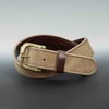 存在感を感じるクーズーと背面にはイタリア伝統皮革を併せた贅沢な仕様のベルト。さらに使い込んでいくごとに色、艶が増し、表面感の毛羽立ちも変化し滑らかになるなど一般的な革の経年変化では味わうことのできない独特な深い風合いになっていきます。