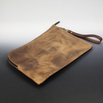 大人向けの薄いラウンドジップクラッチとして製作。財布や小物などのみ持ち歩く普段使いや、ミニタブレットやスマートフォン、手帳、名刺などを収納するビジネスの「BAG in BAG」など様々なシーンでお使い頂けます。