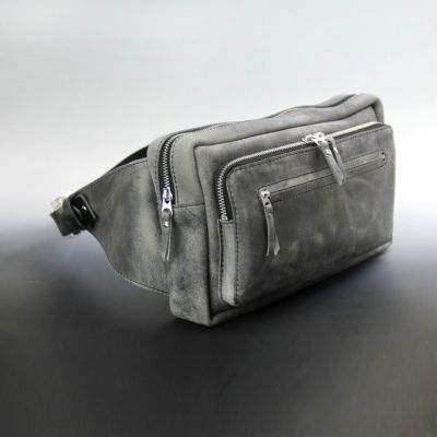 クーズーの表面感を活かしたボックス状レザーボディバッグ。