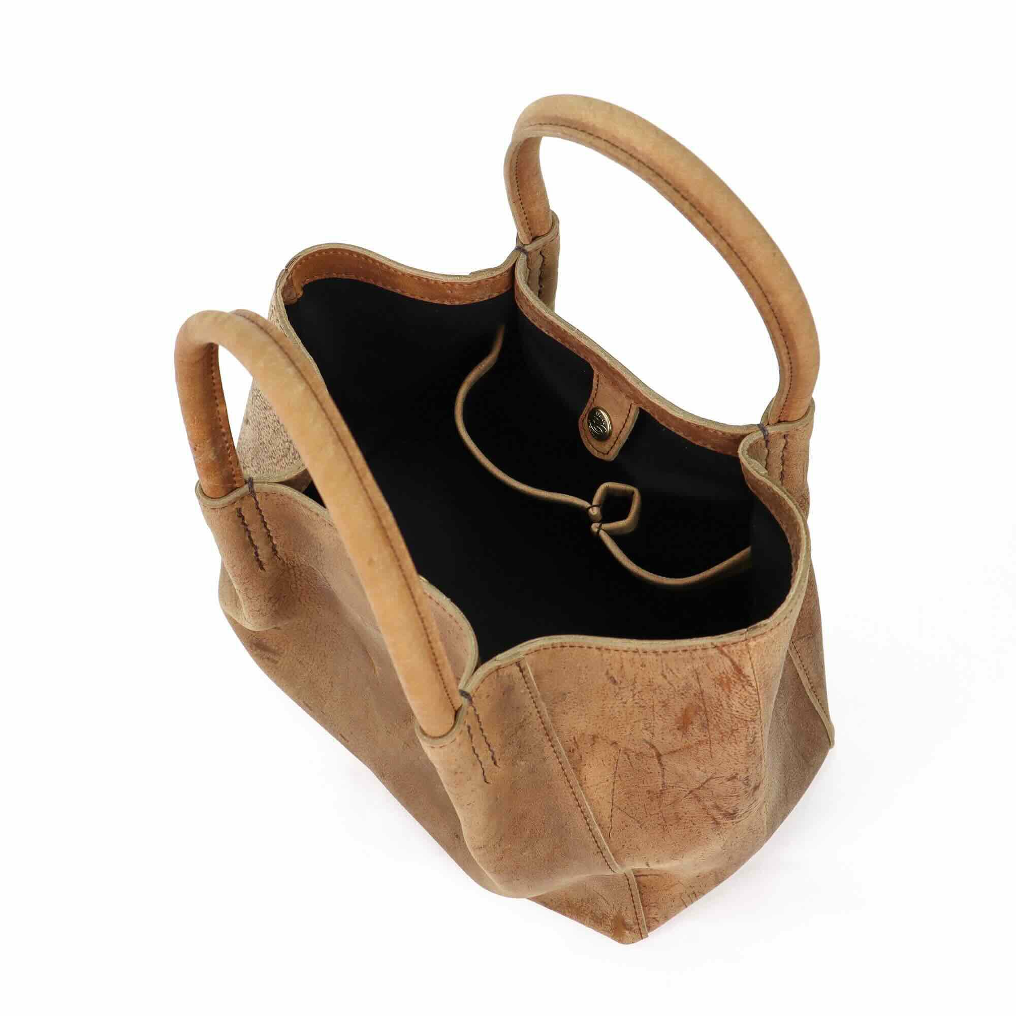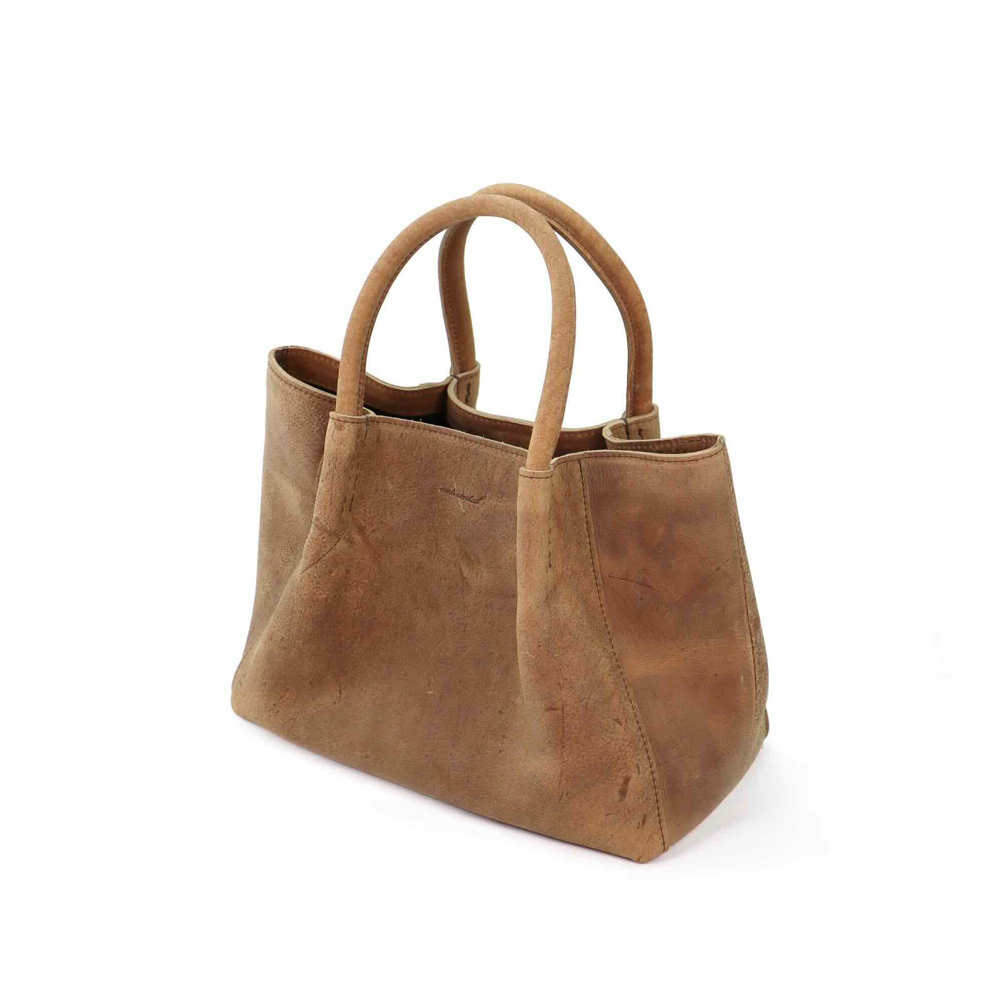 クーズーの素材感を活かした柔らかな流線形を目指したミニトート