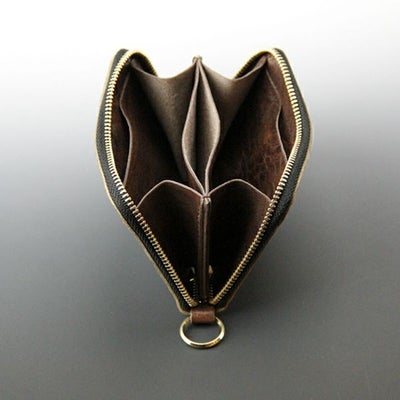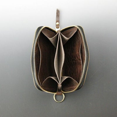 内装に仕分けのある小銭スペースとカードポケット2箇所に加え札やカードも挟める袋状ポケットを搭載。ファスナー式でまとめて持てるので仕事の時やちょっとしたお出かけにも持ちやすい小銭入れです。