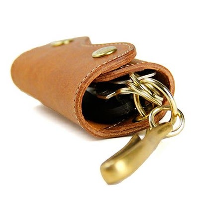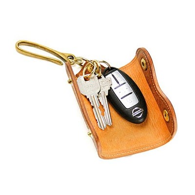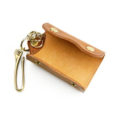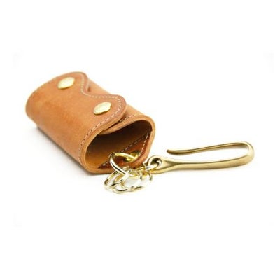 真鍮フックでベルトにひっかけるキーケース。スマートキー+家のカギ+1程度が収納できます。