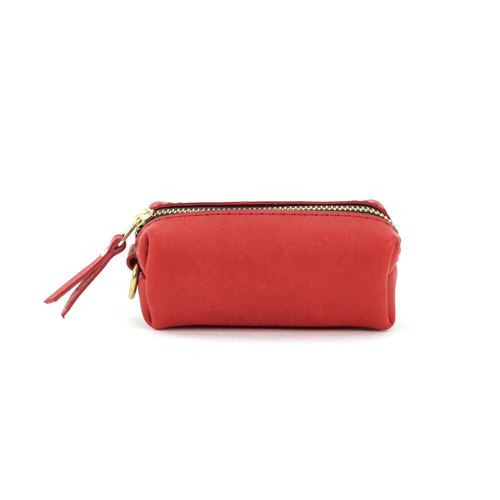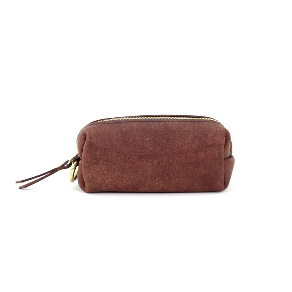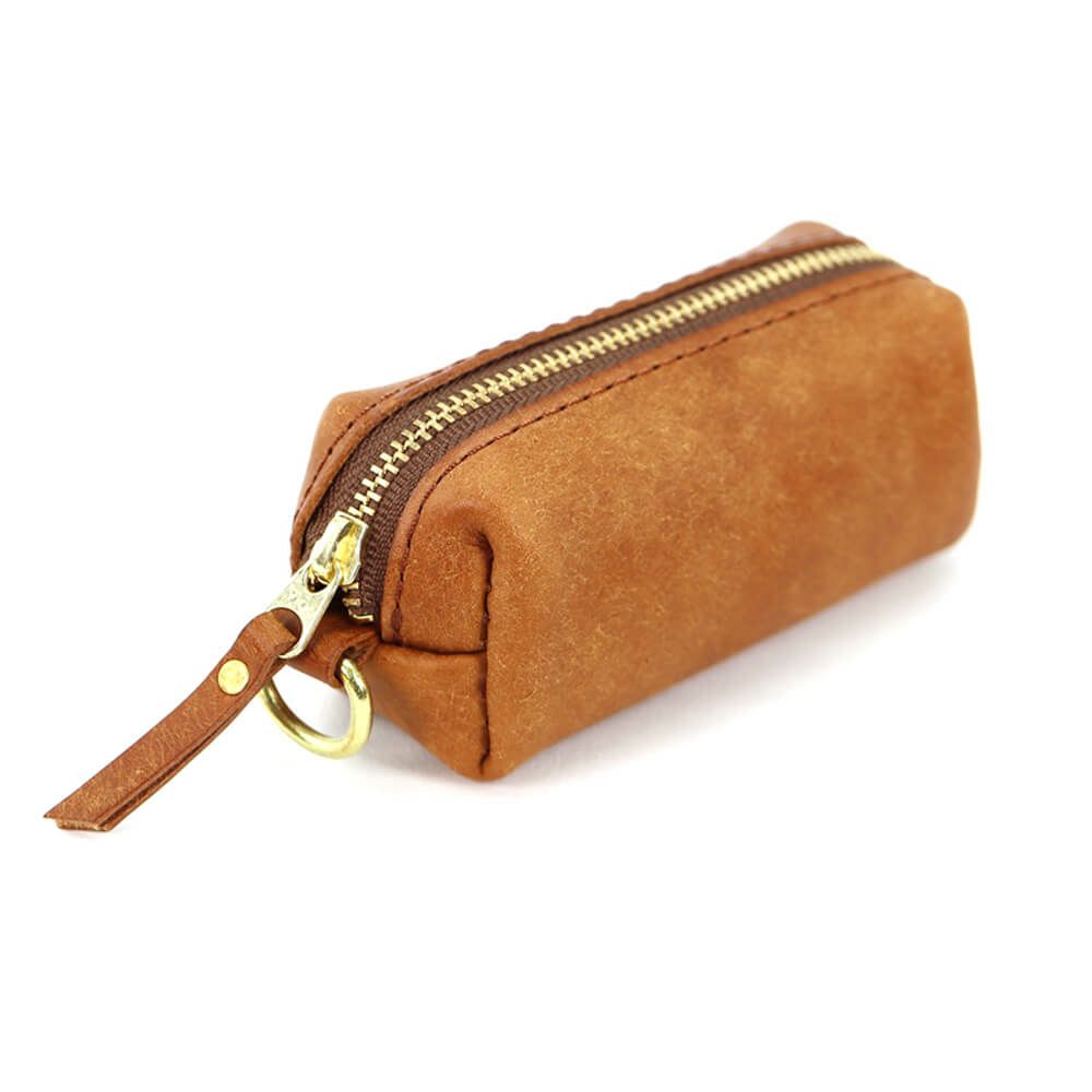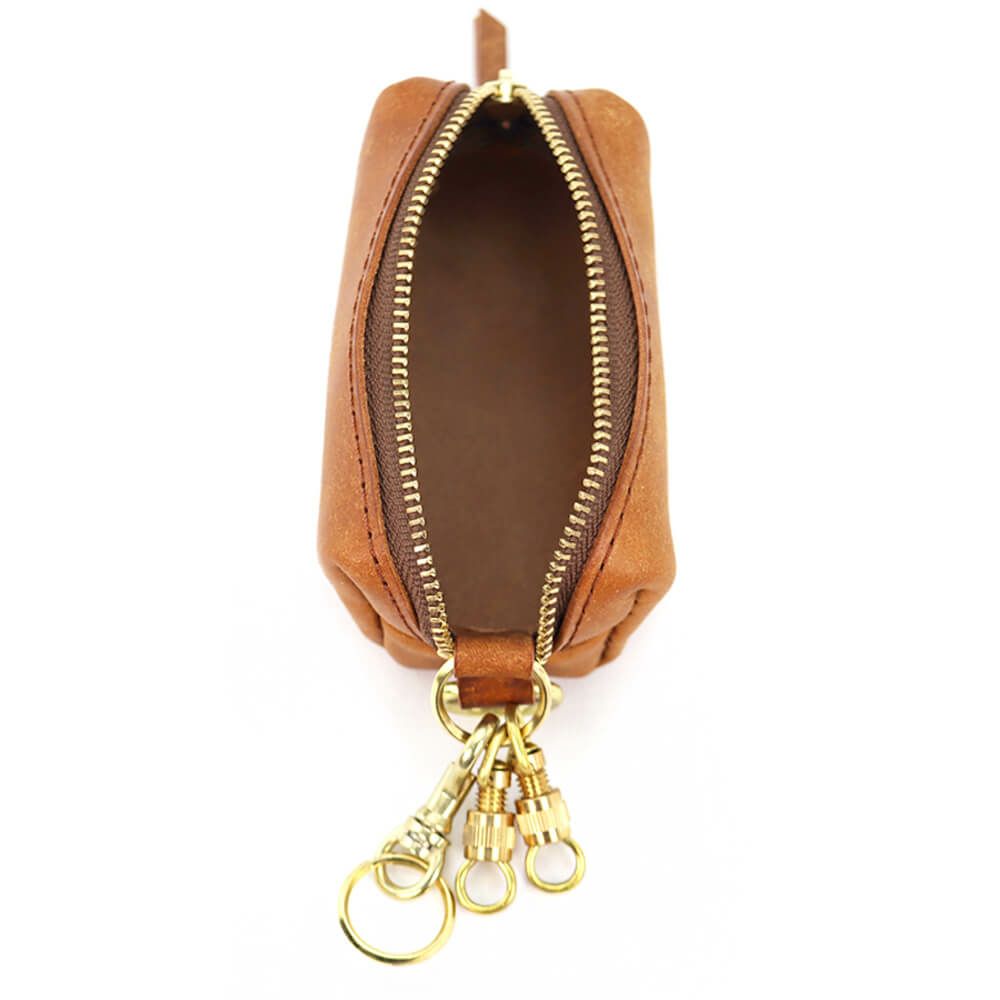 箱掛かった袋状にデザインされたキーケースで大きめのスマートキーも複数収納が可能、内装に巻き込めるRING部分には真鍮製ネジ式金具×2、着脱用のナスカン金具×1を搭載(ご自身でリングを追加する事で増築も可能)