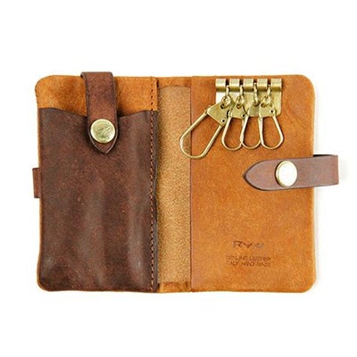 内側に鍵を4個分取付けられる他、スマートキーやインテリジェントキーが入るポケット付レザーキーケース。サイドにはカードキーなども忍ばせられるサブポケット付。