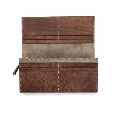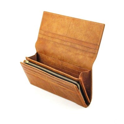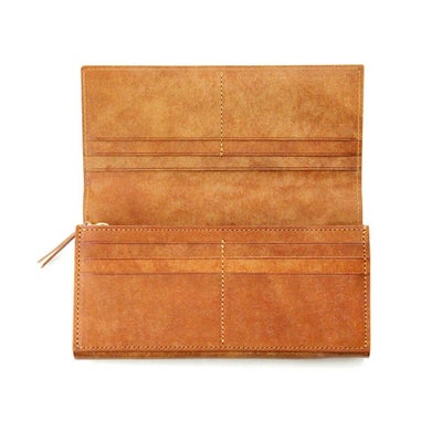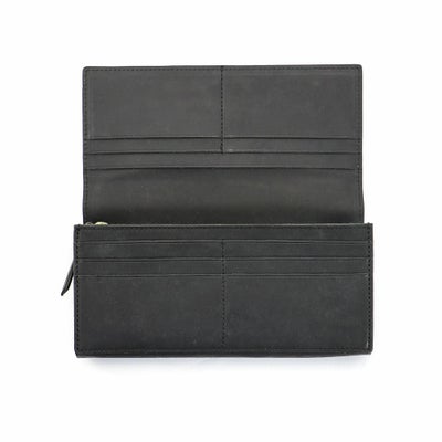 シンプルでフラットな見た目の長財布シリーズでもカード収納性や小銭の開放性も追求した作品