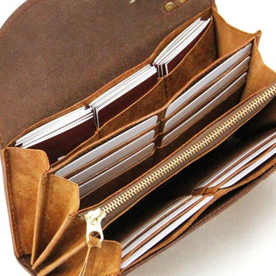 異色2枚の革を重ね合わせた見た目が独特なカード収納力が魅力のメイン長財布。