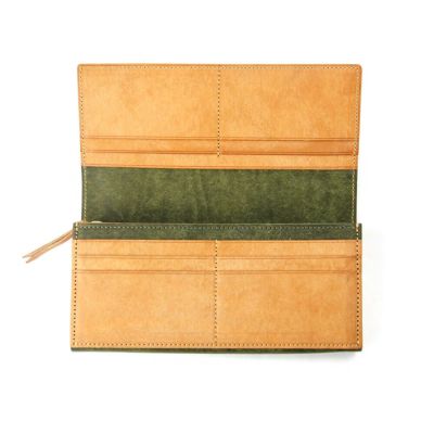 シンプルでフラットな見た目の長財布シリーズでもカード収納性や小銭の開放性も追求した作品
