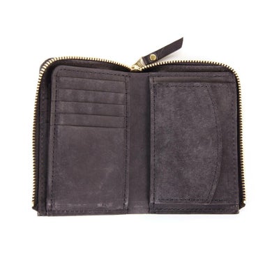 メインカードポケット5pct+札入れ部分隠しカード4pct。サイドポケット2ヶ所。小銭入れは箱型に開くボックスコイン仕様。札入れは片開き2層式。コンパクトながら使い手に沿ったハイスペック仕様。
