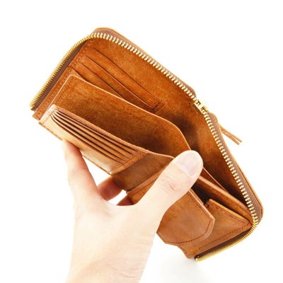 熟練された職人により一枚一枚手鞣しされるため、使い込むごとに手に馴染む表面感と色合いに仕上がり愛着の湧きやすい革といえます。
